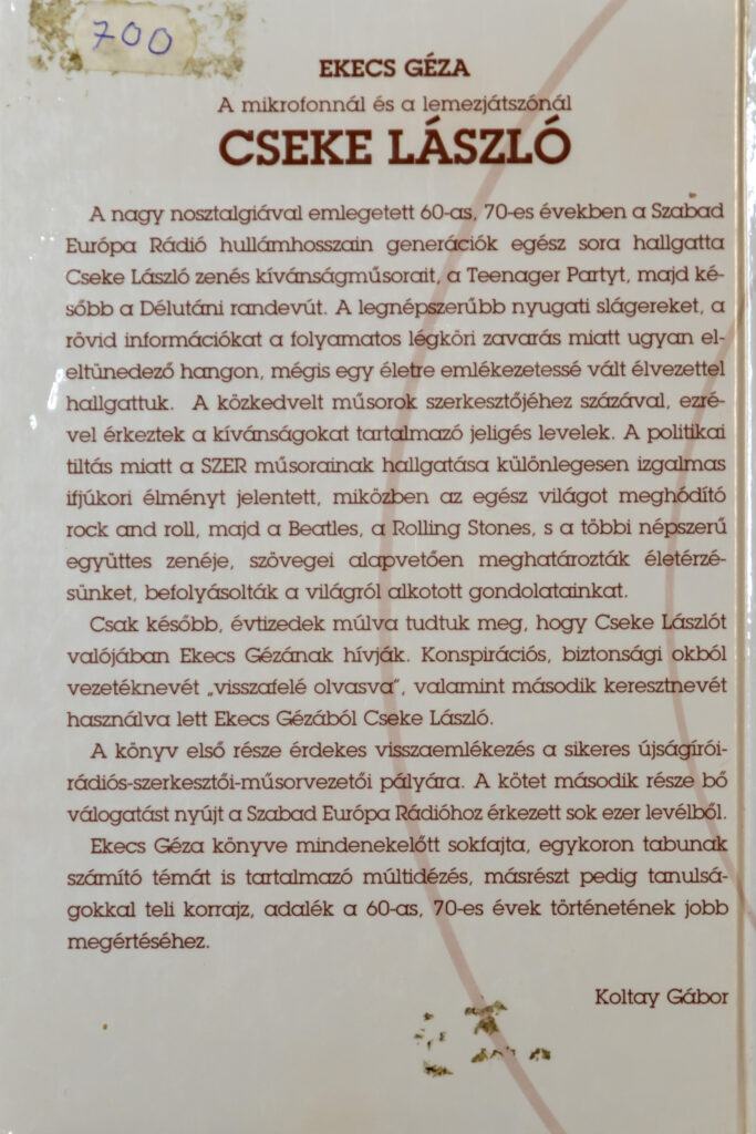 Könyv Ekecs Géza – Cseke László 2022.08.12 augusztus 12, 2022 Egy könyv a „régi” időkről. Cseke László a világ egyik legismertebb DJ-je volt egy letűnt korban a Szabad Európa rádió hullámhosszain. Előző Csukás hegy 2022.08.03 Legújabb Duna Verőce 2022.08.14. Ezeket is érdemes megnézni Csévharaszt 2022.03.15 március 15, 2022 Bulgária 2022.07.25-30 július 30, 2022 Citroen C5 BSM javítás 2021.10.04. október 4, 2021
